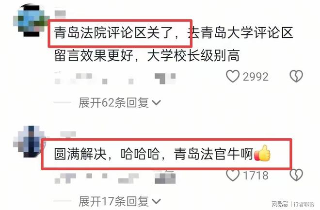 随着事件持续发酵,青岛中院官方账号关闭评论区,青岛文旅也受到牵连,无辜“躺枪”。